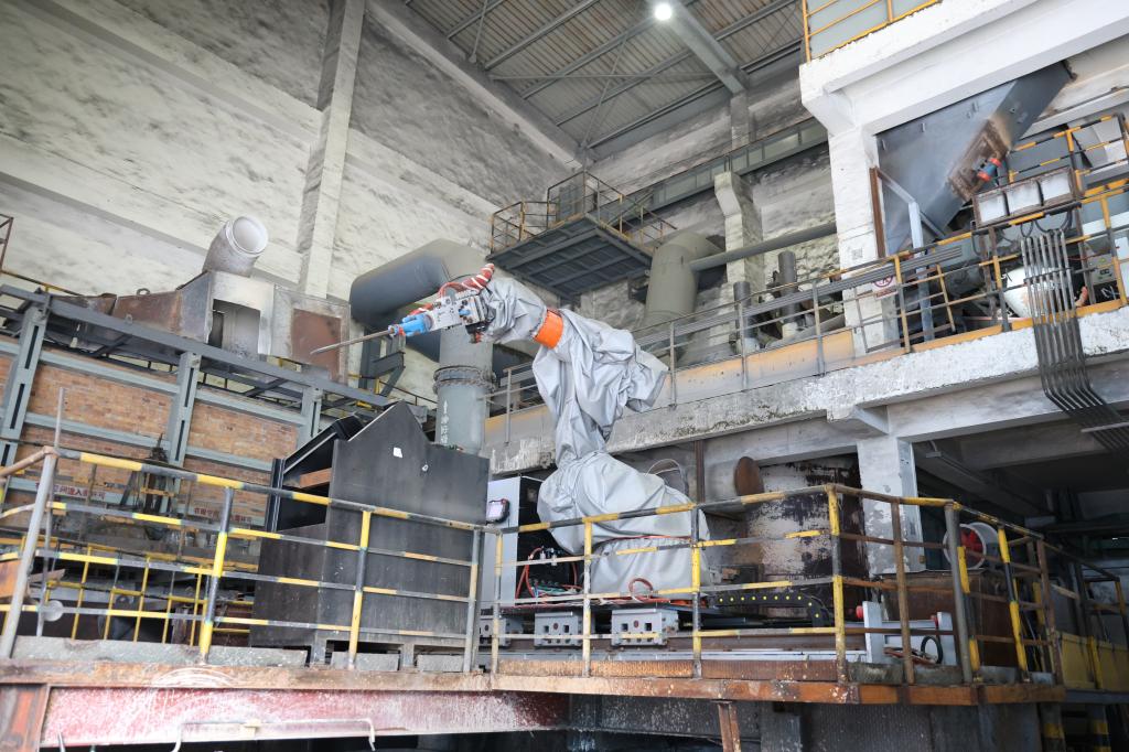 “原本需要四到五個人近距離操作的撈渣作業(yè),現(xiàn)在只需要一個人遠距離控制了”。近日,在錫業(yè)分公司綜合冶煉車間,身著高溫防護服的電爐撈渣機器人正式上崗運行,這是撈渣機器人在錫冶煉行業(yè)的首次運用。