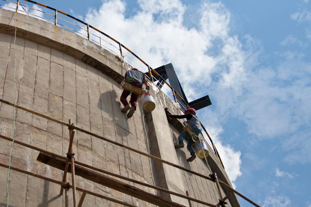 “整個(gè)濃縮站說(shuō)起來(lái)只是簡(jiǎn)單的幾個(gè)主要構(gòu)筑物,但要一一建設(shè)起來(lái)難度可不一般。單說(shuō)濃縮塔的建設(shè),塔高17米、寬18米、上為園柱形、下為園錐體的塔池,池體池壁厚30厘米,池壁最大最小直徑差不能超過(guò)20毫米,池壁鉛垂度正負(fù)不超過(guò)5毫米,也就是說(shuō)內(nèi)池池壁近呼垂直,底部錐體縱、橫中心線誤差不能超過(guò)5毫米,池體標(biāo)高正負(fù)不超過(guò)10毫米,為的是今后架設(shè)濃縮機(jī)傳動(dòng)支承架時(shí)的水平,溢流堰平面度不超過(guò)正負(fù)3毫米,可以想象我們?cè)谑┕r(shí)的難度有多大了?!?/span>